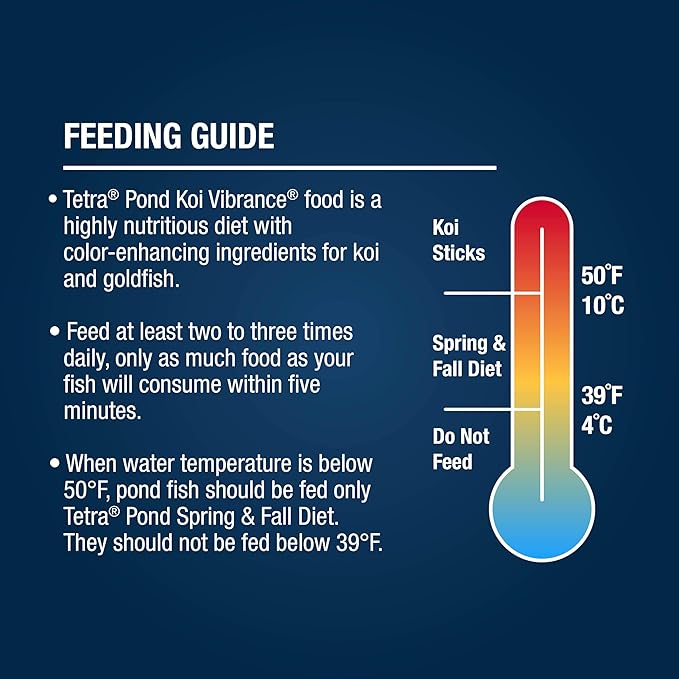 - USAGE: Feed daily when water temperatures are above 50 degrees.