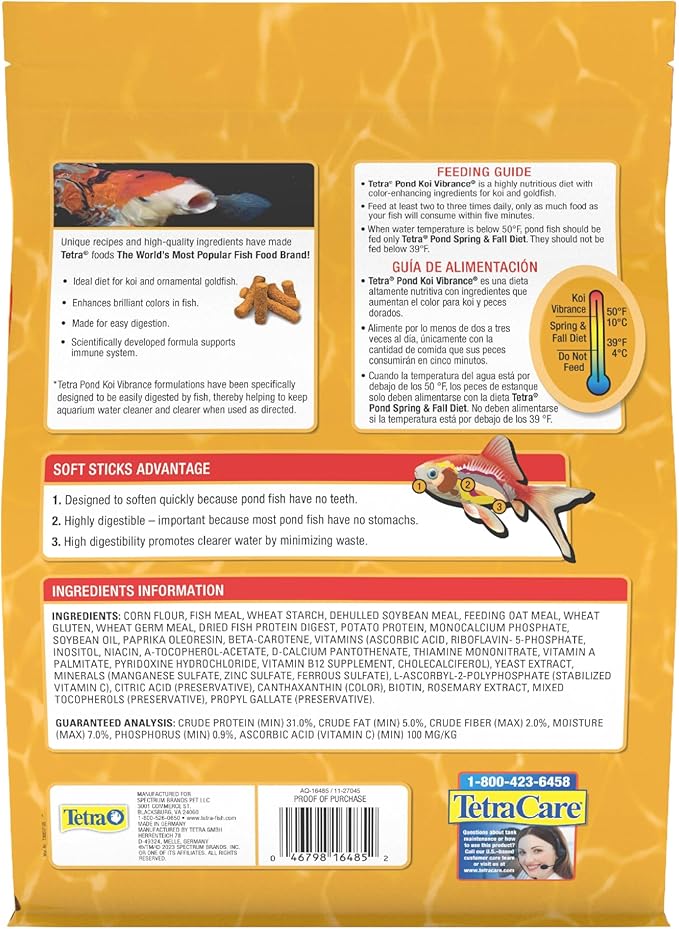 TetraPond Koi Vibrance Soft Sticks, Floating Pond Fish Food for Koi Fish and Ornamental Goldfish, 2.42 Pounds