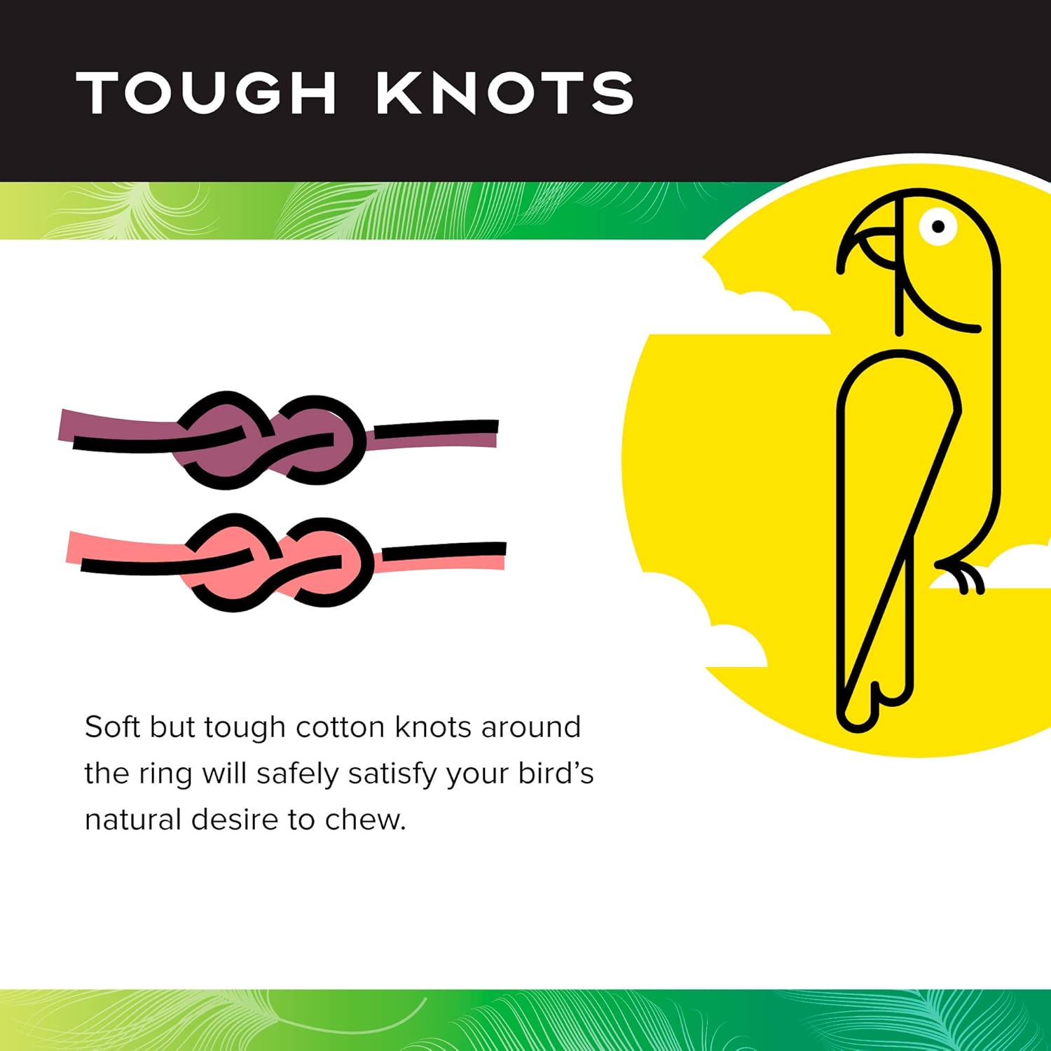 - TOUGH KNOTS: Soft but tough cotton knots around the ring will safely satisfy your bird's natural desire to chew
