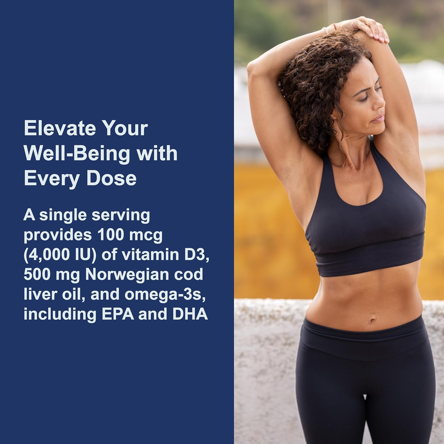 - Provides 6,000 IU (150 mcg) of vitamin D3 + 115 mg of omega-3s