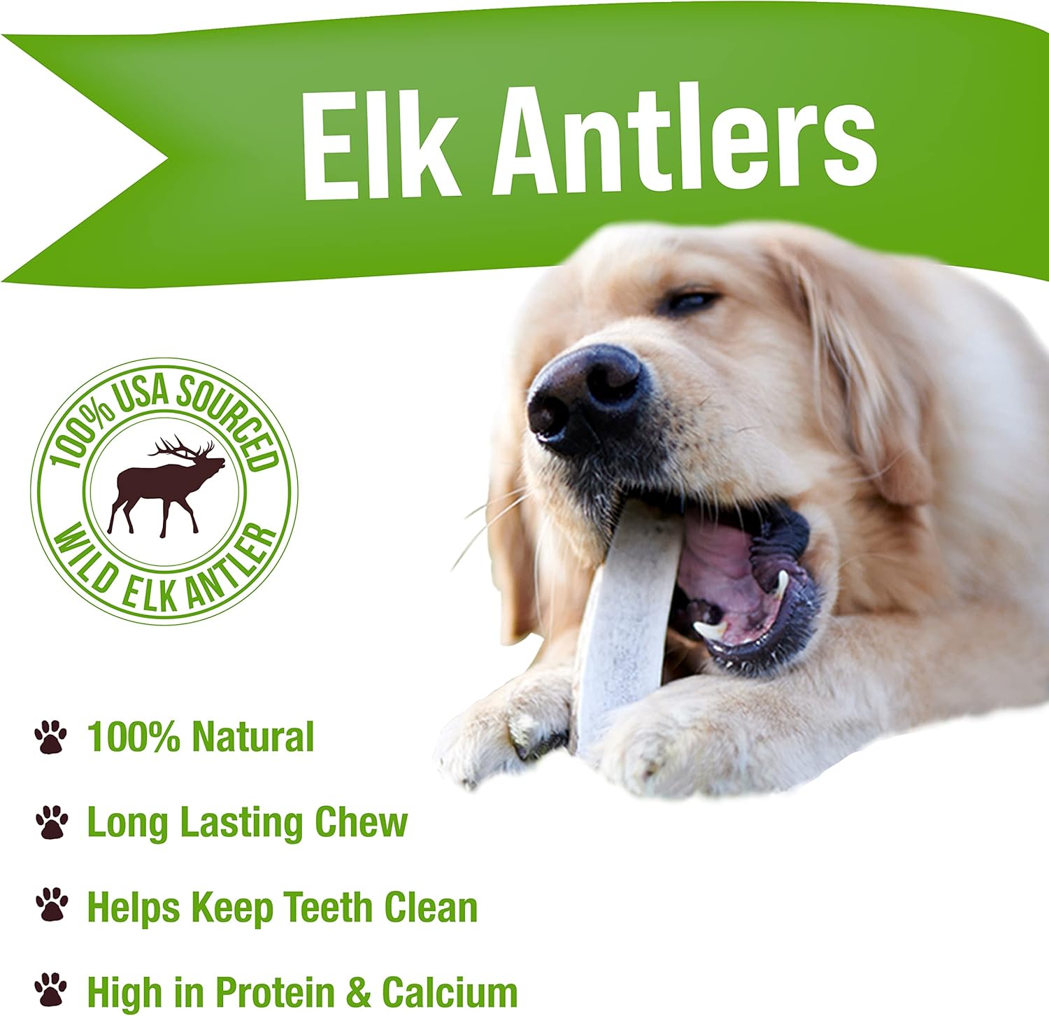 - MADE IN USA - Our bag contains 1 USA sourced Elk Antler Large Chew, 6-8" in length,
