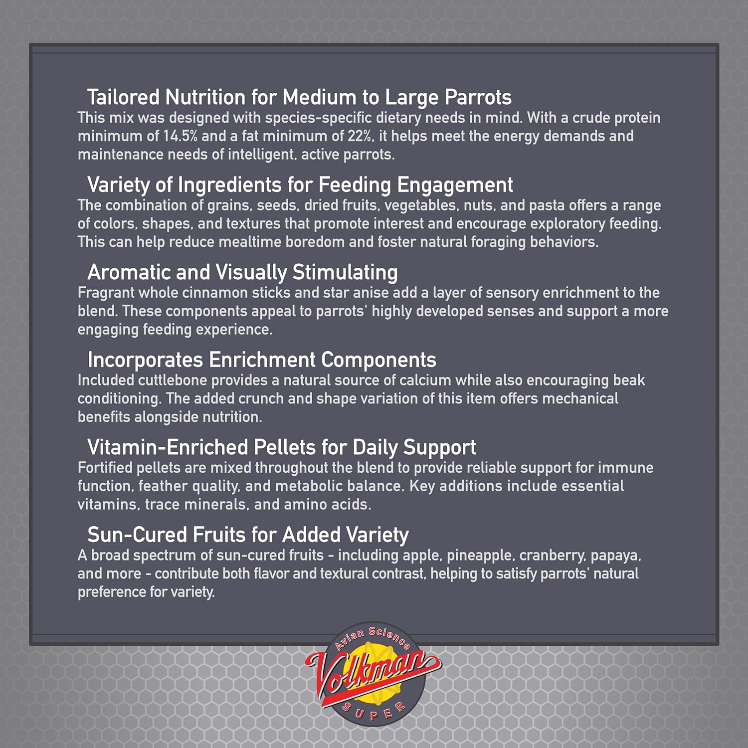 Volkman Avian Science Super African Grey Bird Food 4lb