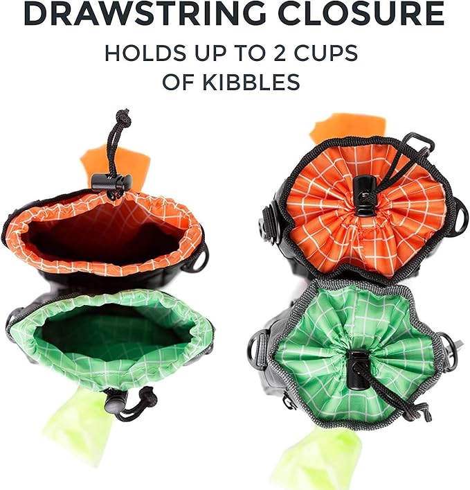 Mighty Paw Dog Treat Bag - Drawstring Closure Pouch - Includes Carabiner Hook and Pick-up Bags - With Reflective Belt - Dog Training Treats Pouch (Black)
