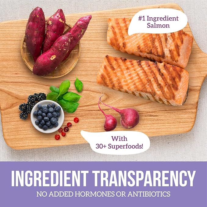 - Premium Protein Sources: Real salmon and menhaden fish meal provide quality protein and Omega 3s for healthy skin and a shiny coat.