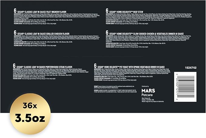 Cesar Wet Dog Food Home Delights & Classic Loaf in Sauce, Variety Pack, 3.5 oz. (36 Count, Pack of 1)