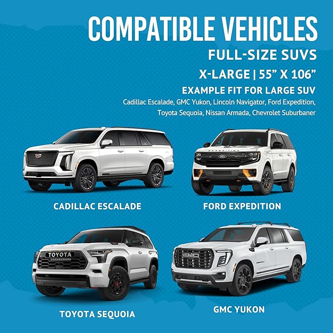 - Versatile Fit: Universal fit and unique design cargo & trunk liner measuring at ( 55" x 106" ) inches. DOES NOT EXTEND FULLY UP TO THE WINDOWS—SEE IMAGES AND MEASUREMENTS FOR ACCURATE COVERAGE DETAILS. Bulldogology designed pet cargo seat covers to install and remove in under 30 seconds. Secure the covers with easy to use durable headrest adjustable straps, keep covers in place with moisture protection non-slip silicon backing. Each feature was manufactured for ease of use and added versatility.