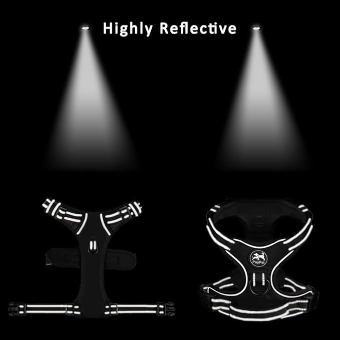 PoyPet No Pull Dog Harness, Reflective Comfortable Vest Harness with Front & Back 2 Leash Attachments and Easy Control Handle Adjustable Soft Padded Pet Vest for Small to Large Dogs (Pink,M)