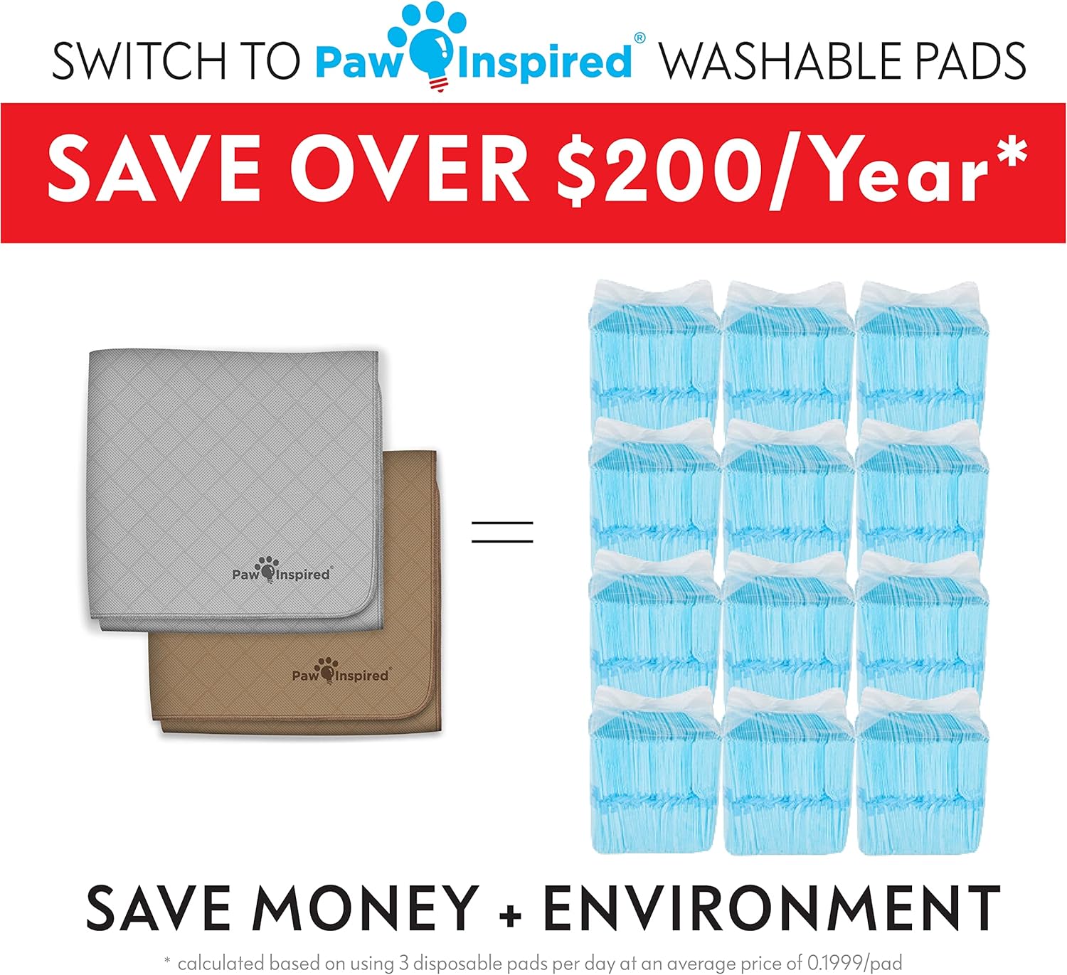 Paw Inspired Washable Pee Pads for Dogs (2 Pack), Leakproof, Non-Slip Reusable Puppy Pads for Potty Training, Whelping, Waterproof Mat (41x41 Inch, Pack of 2)