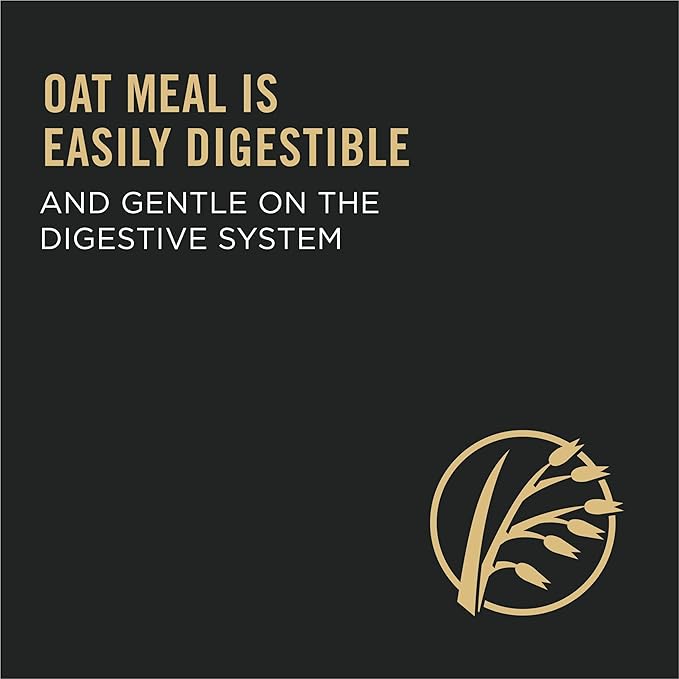 - Oat meal is easily digestible and gentle on the digestive system. High protein formula, with real salmon as the first ingredient