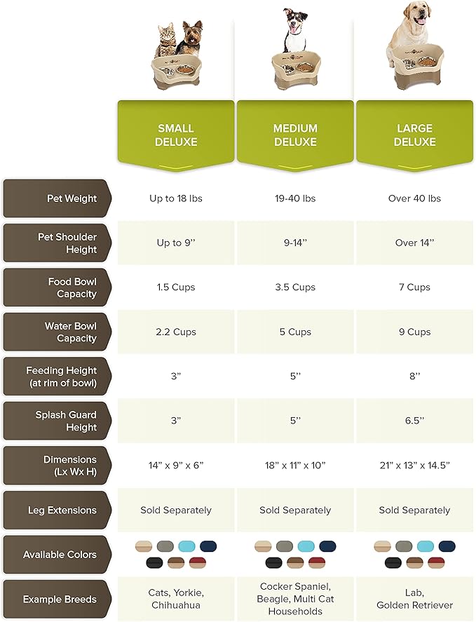 - RAISED DOG BOWLS FOR MEDIUM DOGS: Designed for medium-sized dogs like Beagles, Corgis, and Bulldogs, the Neater Feeder Medium Dog measures 18” L x 11” W x 10” H (with a 5” feeding height). The set includes a 1-cup slow feed bowl for food & a 5-cup extra-capacity water bowl.