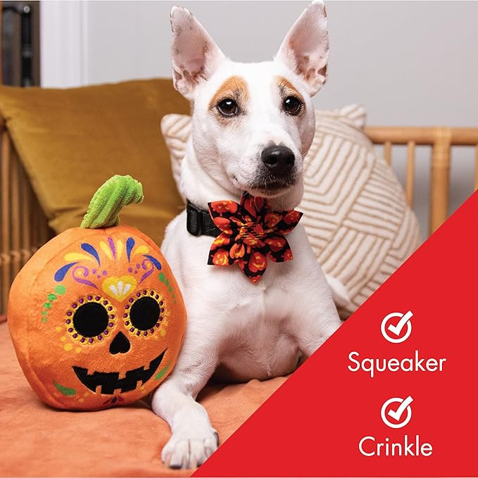 Huxley & Kent for Dogs | Sugar Skull Pumpkin | Halloween Power Plush Dog Toy with Squeaker | Funny Dog Toy Gift | Fun, Durable, and Safe | H&K Squeaky Dog Toys