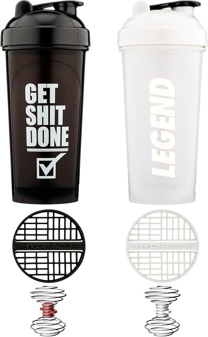 - MIXING GRID/ICE BLOCKERS - HydraCup Plastic Strainers Included with Every Shaker Bottle For Blocking Ice From Hitting Your Teeth When Drinking & Additional Mixing