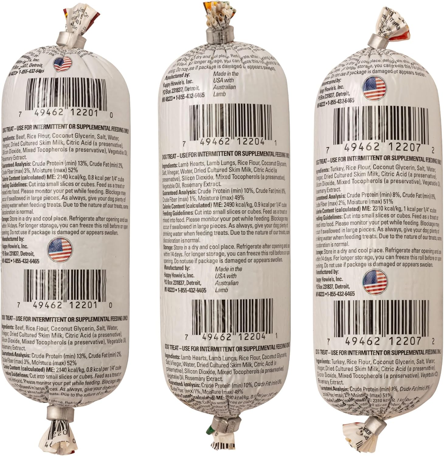 Happy Howie's Soft Meat Roll Treat - Soft Dog Food Rolls, Natural Ingredients, for All Dogs, Made in USA - Beef, Lamb, Turkey, 7 Oz (Pack of 6)