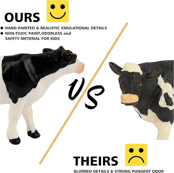 - [Uniquely Molded and Hand Painted] This farm animal toys is hand painted and has a genuinely detailed appearance as well as a cute face. The creatures come to life because to their distinctive molded textures and finely painted embellishments. All of the animal representations stand upright and do not tumble over which makes children to spend more time observing and playing with them.