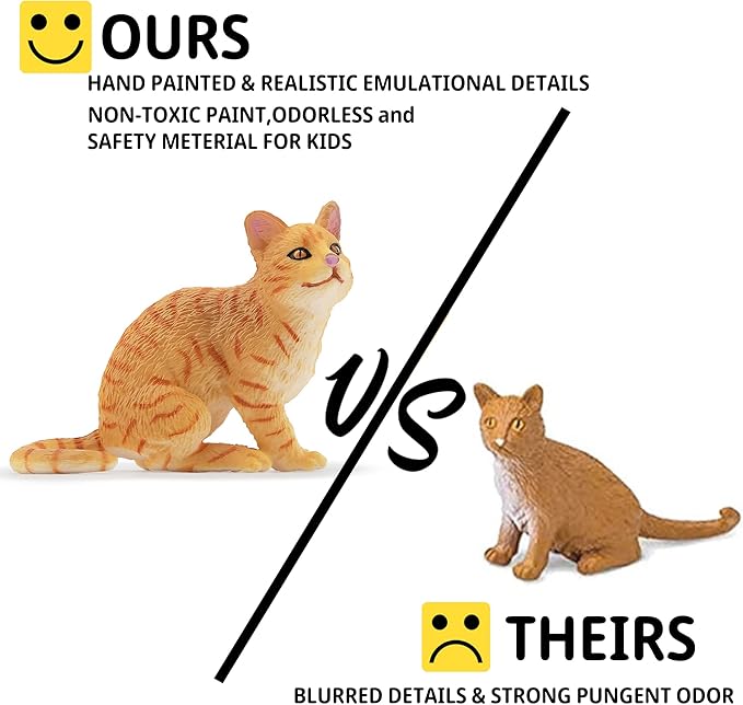 - ✔ VIVID HAND PAINTED DETAILS - This plastic cat set was made by hand painted with high realistically detailed appearance, cute face and childish eyes. Their uniquely molded textures and richly painted details make the animals vivid. Children would like to spend more time to observe and play with them.