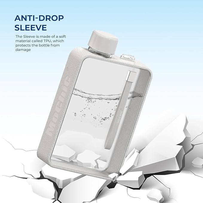 - 5- Versatile for Your Daily Needs: Not just your average clear flask, but a multitasking flat water bottle for travels and beyond, our A5 water bottle has no limits; Ideal as a camping water bottle, compact water bottle for backpack side pocket, bag water bottle for school trips, or a pretty water bottle for gym - endlessly practical, our White clear water bottle has it all