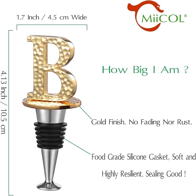 - Fashionable and Practical - The MiiCol wine stopper features a stylish design with personalized initials, adding a pop of color to any table setting. Its distinctive lettering helps identify different wines or owners, making it an ideal gift for special occasions.