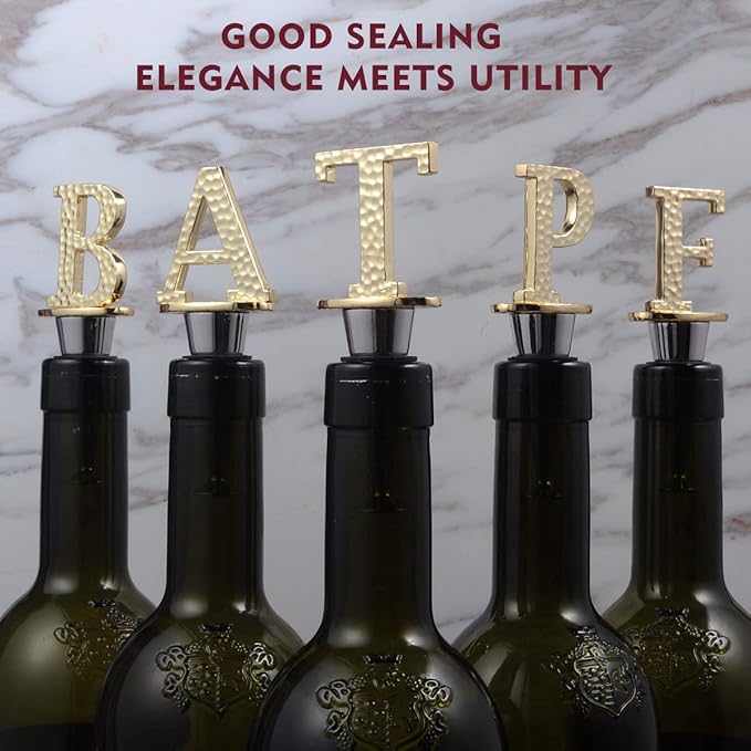 Miicol Wine Bottle Stopper, Prosecco Stopper, Gold Wine Stopper, Personalised Champagne Stopper, Initial Wine Stopper, Funny Prosecco Gift, Wine Lovers Gift, Kitchen Decor, Letter T
