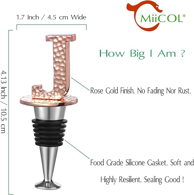 - Fashionable and Practical - The MiiCol wine stopper features a stylish design with personalized initials, adding a pop of color to any table setting. Its distinctive lettering helps identify different wines or owners, making it an ideal gift for special occasions.