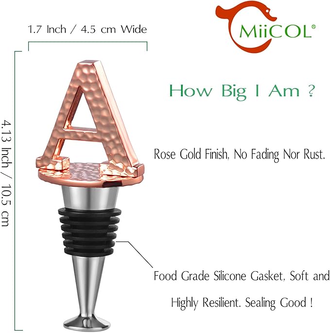 - Fashionable and Practical - The MiiCol wine stopper features a stylish design with personalized initials, adding a pop of color to any table setting. Its distinctive lettering helps identify different wines or owners, making it an ideal gift for special occasions.