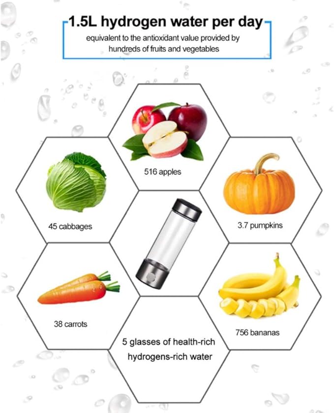 - 🍶[Healthy Drinking Water Bottles]Glass Hydrogen Generator contain bio-minerals, which react positively with hydrogen-rich water to remove pollutants in the water, including heavy metals, fluorides and so on. 1.5L of water per day is equivalent to the antioxidant value of hundreds of fruits and vegetables.thereby reducing human aging and enhancing immunity.
