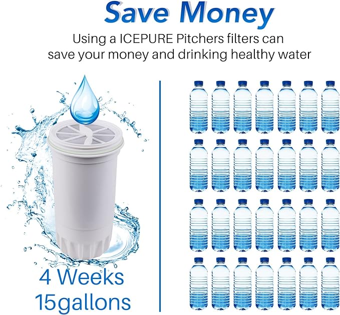 ICEPURE NSF53 6-Stage Pitcher Water Filter Replacement for Zero Pitchers ZR-017, ZR-001, ZR-003, ZR-004, ZR-006, ZR-008, ZR-012, ZR-600,0-TDS 2PACK
