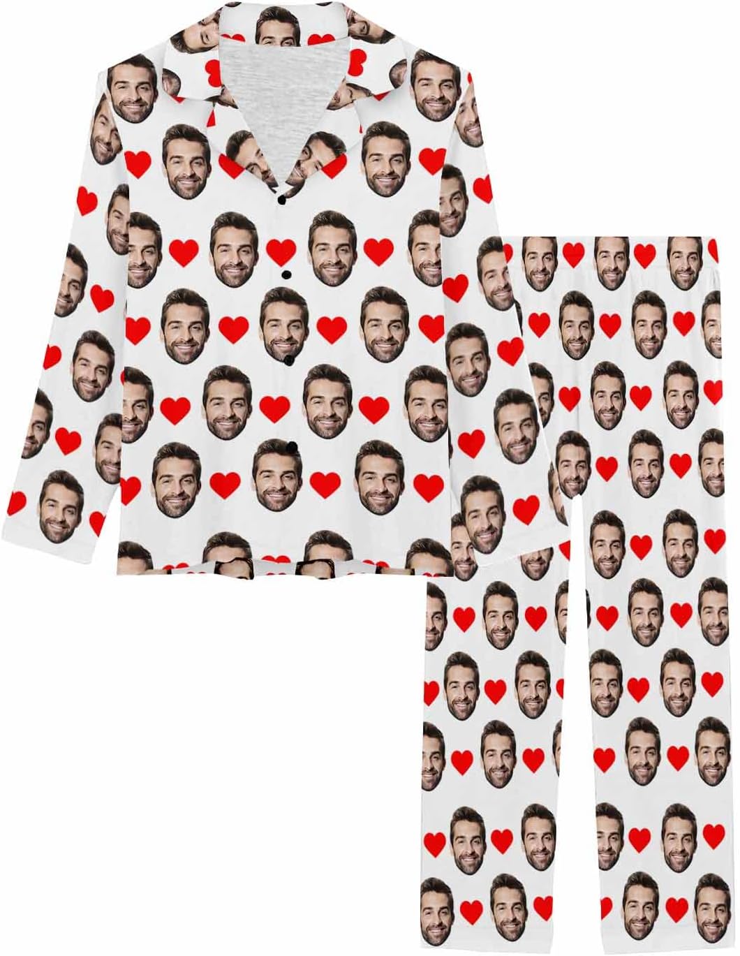 MyPupSocks Custom Face Pajamas for Women Set, Personalized Photo Long Sleepwear XS-XXL