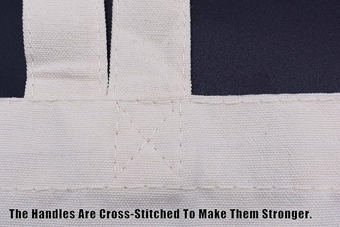 - Material: 100% Cotton Canvas,hardy & durable; The handles are cross-stitched to make them stronger