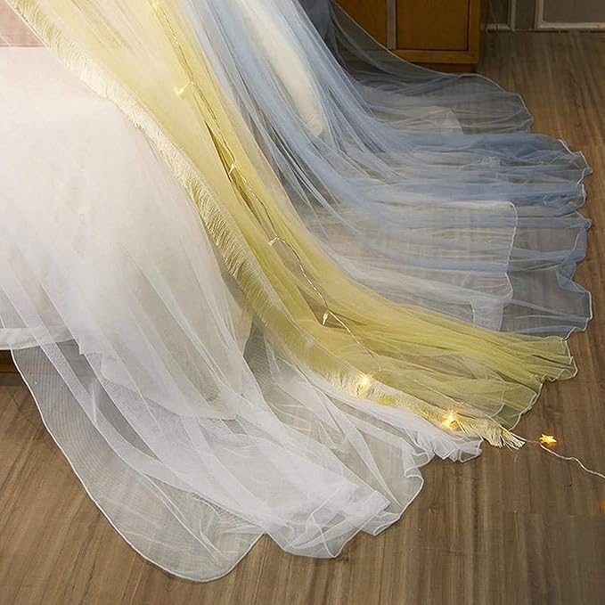 Canopy Frame for Bed with Mesh Netting - Queen Size Bed Canopy Steel Frame with Bed Curtains,Classic Flat Top Mesh Net Bedroom Decor(Stainless Steel Pipes and Accessories Included) (Pink Blue)