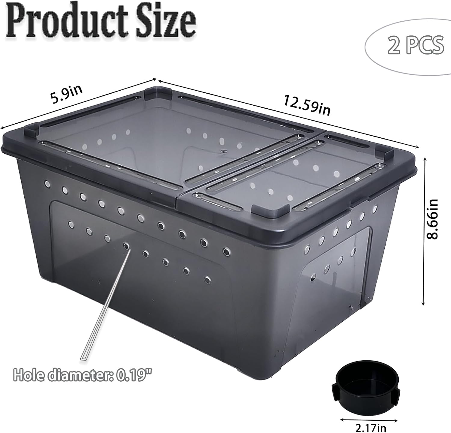 - PERFECT SIZE: Portable reptile breeding box habitat fit size (12.6"x8.7"x5.9"/L*W*H, Hole diameter: 0.2”), suitable for small reptiles, including juvenile bearded dragons geckos scorpions spiders snakes turtles