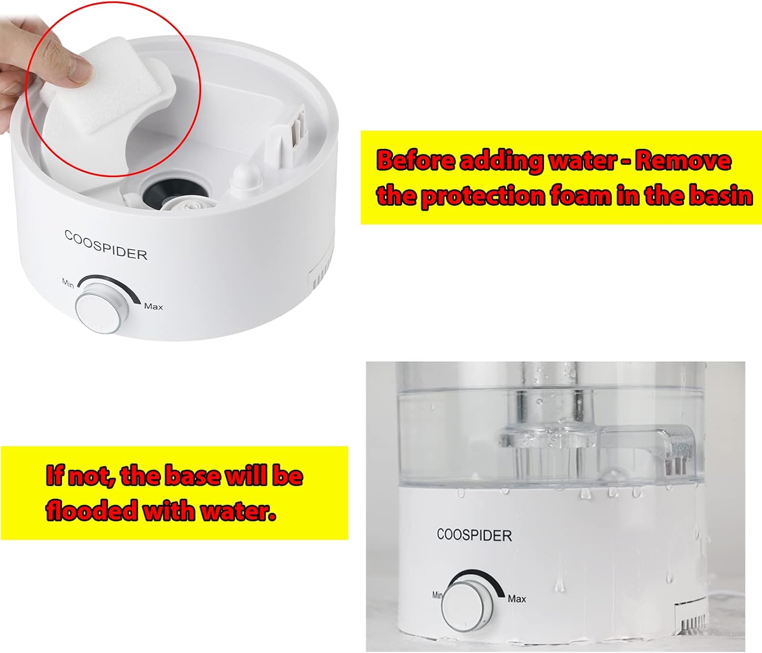 - WARM TIP: To prevent water from flowing back to the atomizer at the base and affecting the normal operation of the reptile misting system. The connection between the cover and the mist outlet pipe is not sealed, so it is normal for mist to leak from the top when the equipment is running. NOTES: Do not move the device or add water while the humidifier is running.