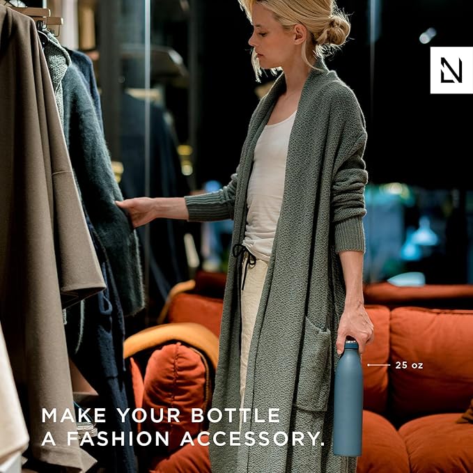 LARS NYSØM Stainless Steel Insulated Water Bottle 12oz 17oz 25oz 34oz 51oz | BPA-free Insulated Thermo Flask for Hot and Cold Beverages | Leakproof Drinking Bottle (Whispering Blue, 25oz)