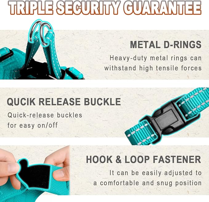 - 【Safety Guarantee】: 3 layers of security,the Hook and loop panel on the back works with a buckle and two D rings to keep your pet secure. 3M Reflective ensure him is highly visible and safe at night.