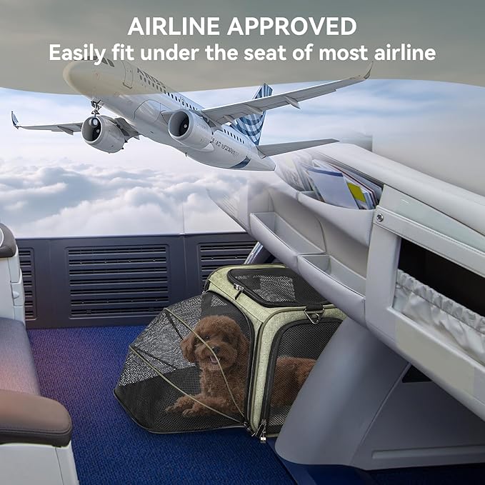 Petsfit Expandable Cat Dog Carrier Airline Approved, 17" L x 11" W x 11" H Soft-Sided Portable Pet Travel Carrier for Kitten, Puppy, Removable Soft Plush Mat and Pockets, Auto-Locking Zippers
