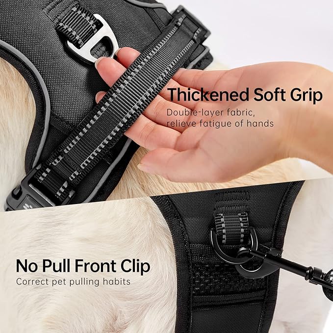 NESTROAD No Pull Dog Harness,Adjustable Oxford Dog Vest Harness with Leash,Reflective No-Choke Pet Harness with Easy Control Soft Handle for Small Medium Dogs(Medium,Black)