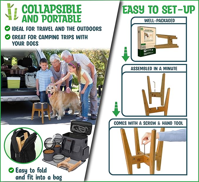 - Portable, Travel-Friendly Design – The collapsible, easy-to-assemble design fits neatly into luggage or car compartments, making it ideal for camping, trips, or visits to pet training grounds. This dog bowl stand is perfect for on-the-go pet owners.