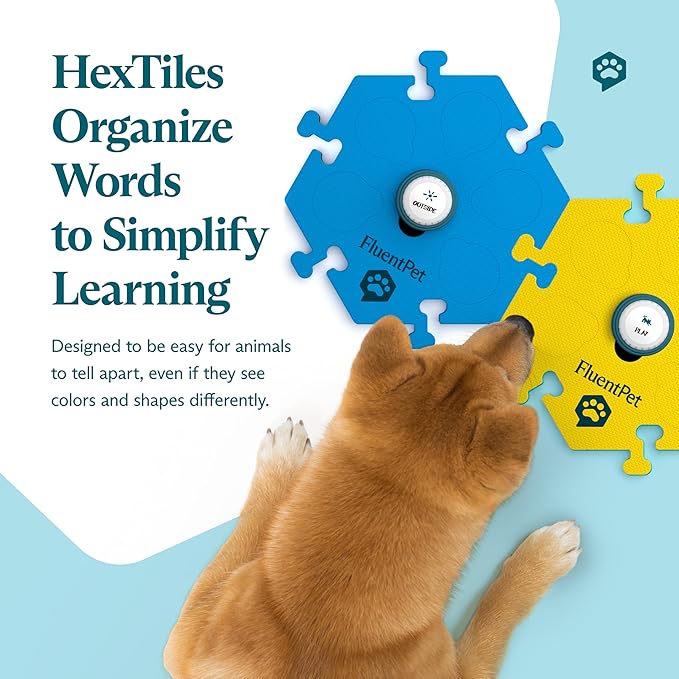 - 【 SECURE & EXPANDABLE FOR GROWING VOCABULARIES 】: Each patented HexTile holds up to 6 talking buttons snugly in place while taking up minimal space in your home. As your dog or cat learns new words, simply add more buttons to create a continuously expanding communication system that grows right along with your dog’s abilities.