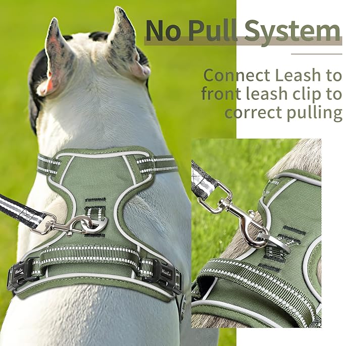 HEELE Dog Harness, Dog Harness for Small Medium Large Dogs No Pull Adjustable Padded Reflective Harness with Handle for Walking Training, Green, XL
