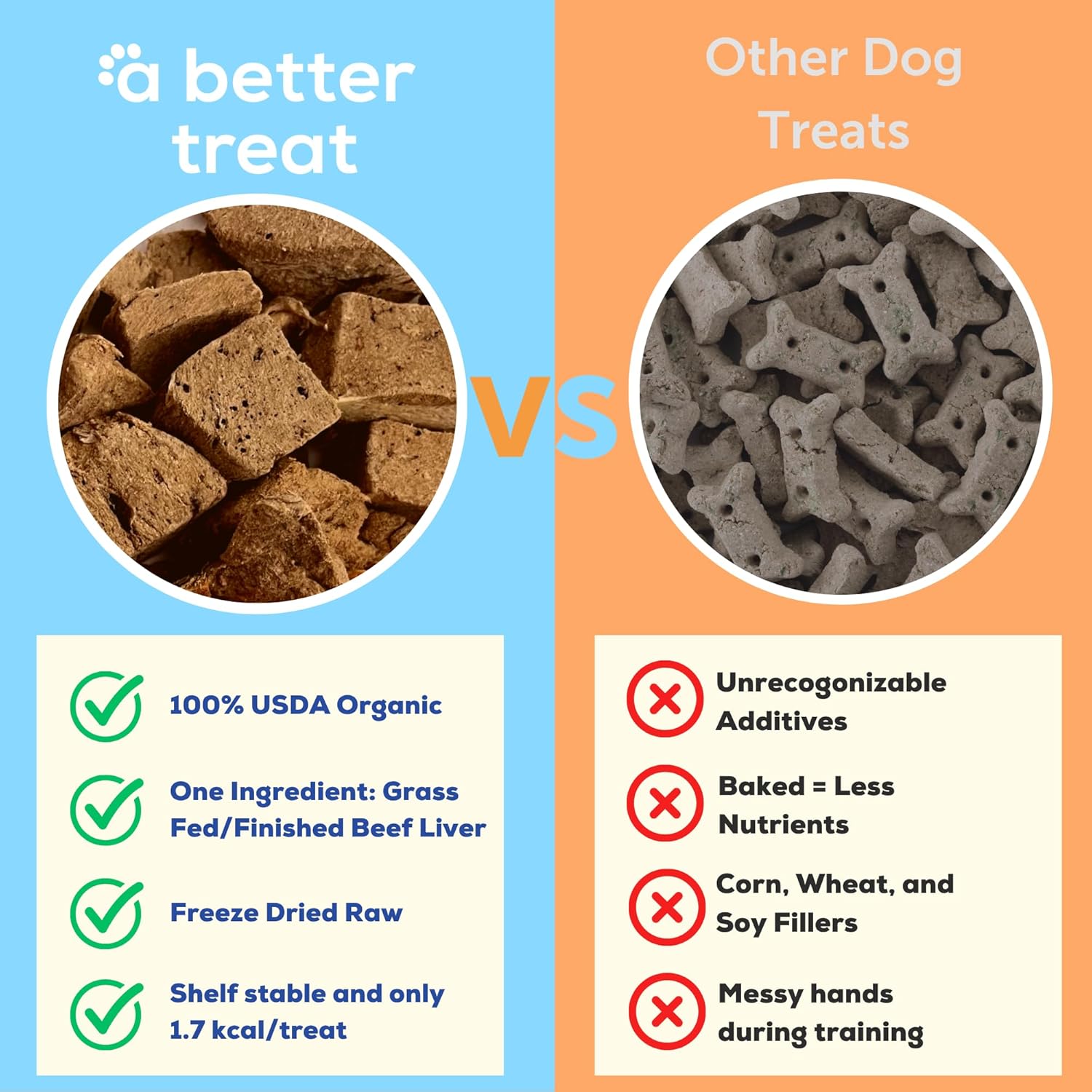 A Better Treat – Organic, Freeze Dried, Single Ingredient, 100% Grass Fed & Finished, Pasture Raised Beef Liver Dog Treats, Cat Treats | Natural Healthy | High Protein, Diabetic Friendly | Made in USA