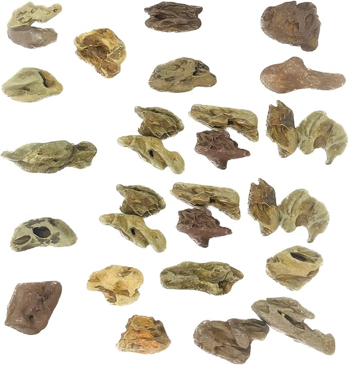 - EACH STONE ONE OF A KIND --- The aquarium's decorative stones weigh about 4.4 pounds (2kg). Each stone is between 4cm (1.5in)and 8cm(3.1in) in length.Each stone in the parcel was of different sizes,There are a few stones in a pack and we can't give the exact answer, but each one is carefully selected.The stone color is not uniform, there are brown, cyan, red.