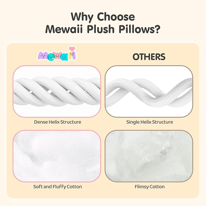 - Super Soft for Cuddling - Mewaii cat plush pillows use squishy fabric to wrap up the softest cotton with fine embroidery and good stitching so that the kawaii plush cuddle pillow can provide the best cuddling sense to help you feel comforted after the stressful days at work or study.