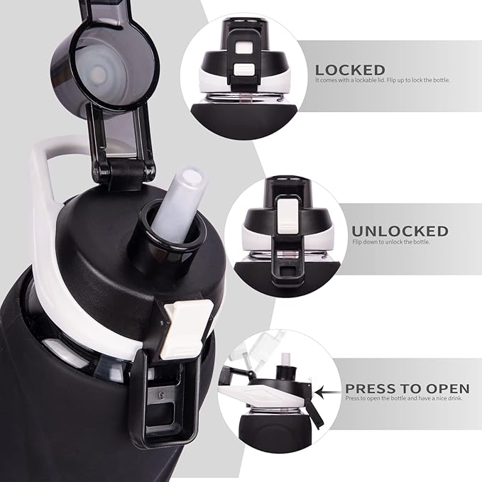 - š§ ćDETACHABLE STRAW & WIDE MOUTHćWith a removable straw, you can directly suck without turning your head to the sky, perfect for spill-free drinking. The wide mouth makes it easy to clean the water bottle throughly and fit fruits and ice cubes in it. Great for infused water, smoothie, juice, milk, coffee, etc.