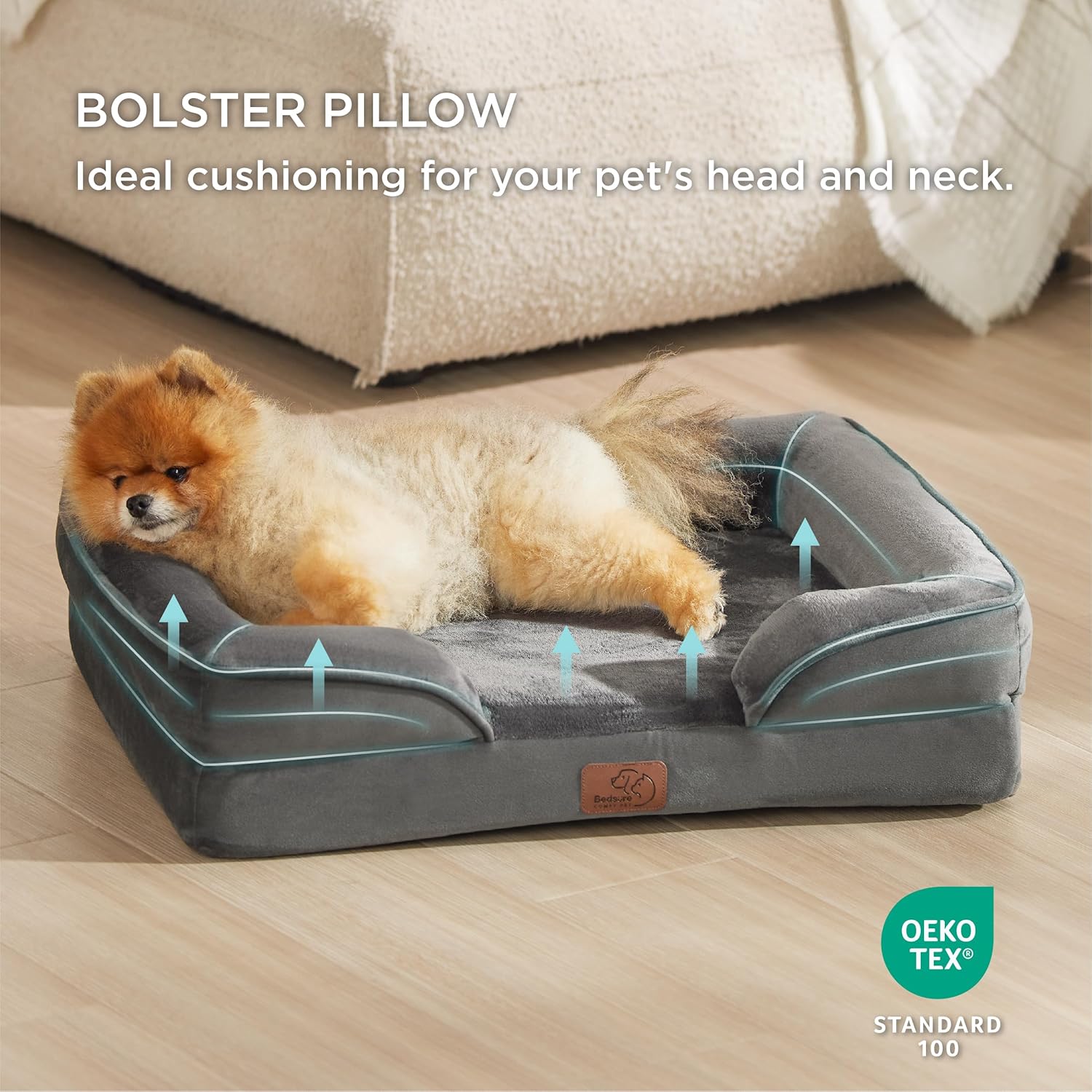 - Enhanced Comfort: The 4-sided bolster design promotes ultimate comfort and security, offering your pet a variety of cozy positions to snuggle. The cushioned bolster shape is deeply filled to support your pet’s head and neck for a more restful sleep. And the lowered entrance protects your pet's knees and promotes accessibility.