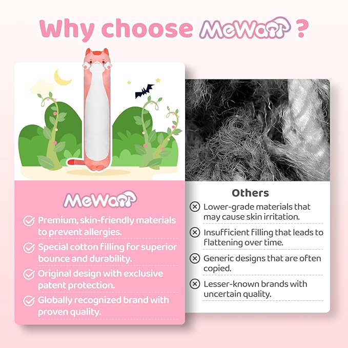 - Cat Body Pillow Multipurpose: We provide you not only a multiple-size hugging pillow, but also the best lumbar body pillow when you sitting on a sofa, and also the most comfortable sleeping pillow for a sweet sleep on the bed.