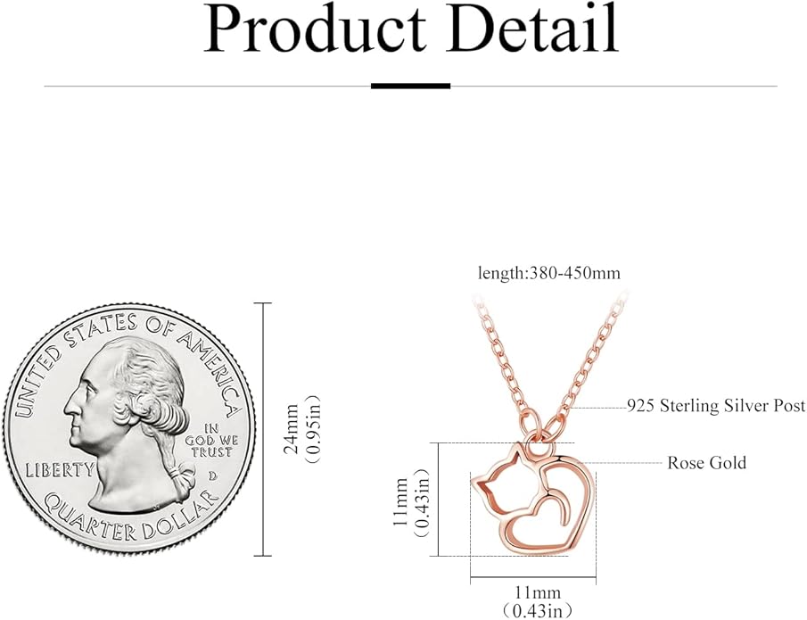 - 💕【UNIQUE DESIGN】 - Crafted from sterling silver, this Cat Pendant Necklace features rose gold plating to add a classic touch. The Gold Chain adds extra style and sparkle.Show your style and love of cats with this unique design. Shine bright with this lovely cat necklaces!