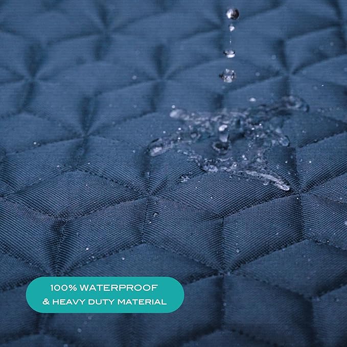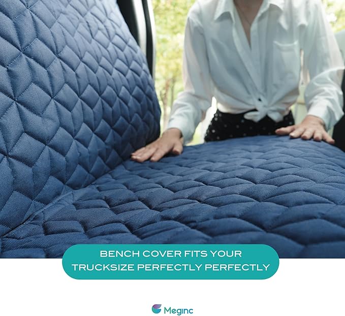 - đăSTURDY MATERIALă: HEAVYDUTY! HEAVYDUTY! HEAVYDUTYďźMeginc bench seat covers is made of 600D Oxford cloth, 100g soft PP cotton, 210D polyester fabric, 100% waterproof TPU and PVC anti-slip mesh. A thick pet seat cover can mitigate the damage of your vehicle and protect carpet, upholstery from unpleasantries such as dog hair, urine, or vomit, moreover our protectors also providing a familiar, comfortable and safety space for your pets during the road travel.