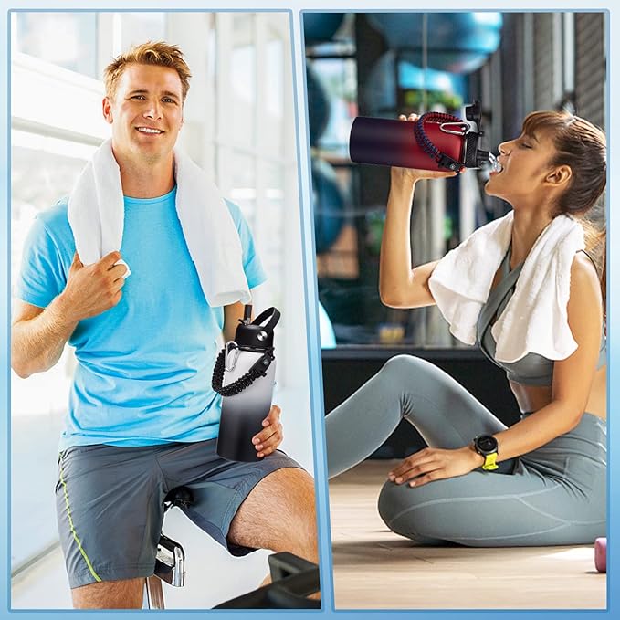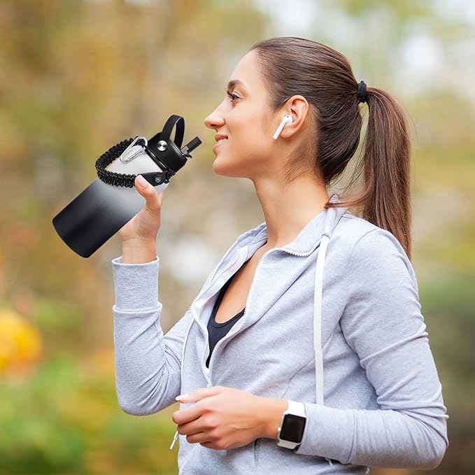 - SUPER DEAL COMBO - Buy one 32 oz insulated water bottles, get 9 accessories: 1 x straw lid, 1x Auto Chug lid, 1 x paracord handle, 2 x straws(BPA Free), 1 x carrier bag, 1 x shoulder strap, 1 x protective silicone boot, 1 x straw brush. The 32oz insulated water flask perfect to keep you stay hydrated throughout the day