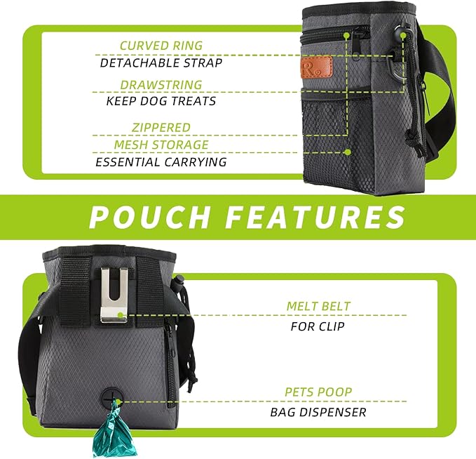 - Get you ready - our snack bags come with a dog poo bag dispenser (poo bag not included) for storing your pet's droppings. Used bags can be directly hung or tied to one of the 2 D-rings. You'll love its built-in dog poop bag holder, so your dog poop bag is always ready when you need it. Quickly grab your favorite dog training clicker from one of the 2 handy d rings, thus facilitating the training of your puppy.