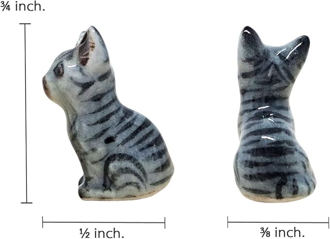 WitnyStore Tiny 3⁄4 Inch High Gray Tabby Shorthair Cat Sitting Tilt Head Figurine - Miniature Hand Made Painted Ceramic Cats Kitten Animal Cute Porcelain Decorative Collectible Figures Décor Gifts