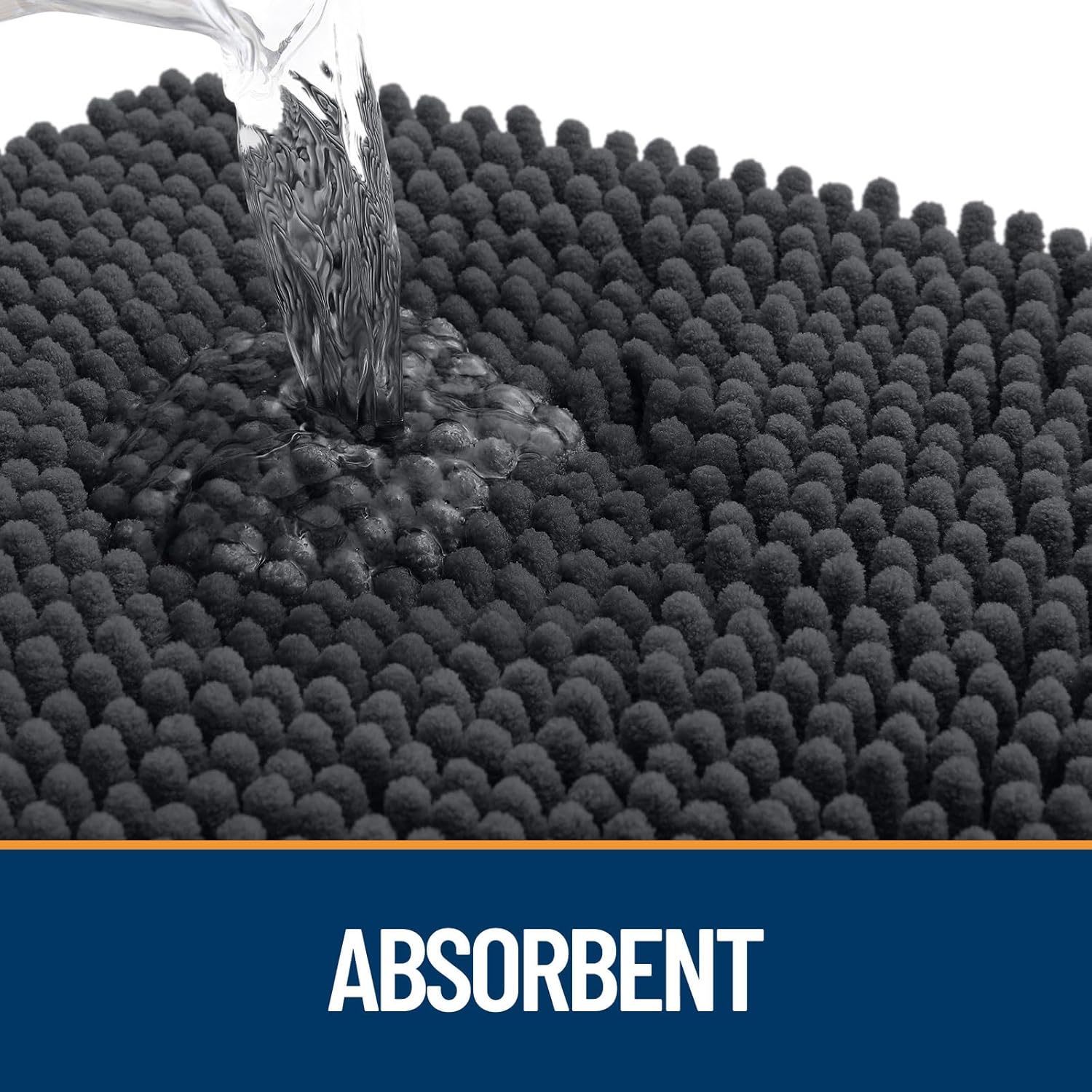 OLANLY Dog Door Mat for Muddy Paws 59x24, Absorbs Moisture and Dirt, Absorbent Non-Slip Washable Doormat, Quick Dry Chenille Mud Mat for Dogs, Entry Indoor Entryway Carpet for Inside Floor, Dark Grey